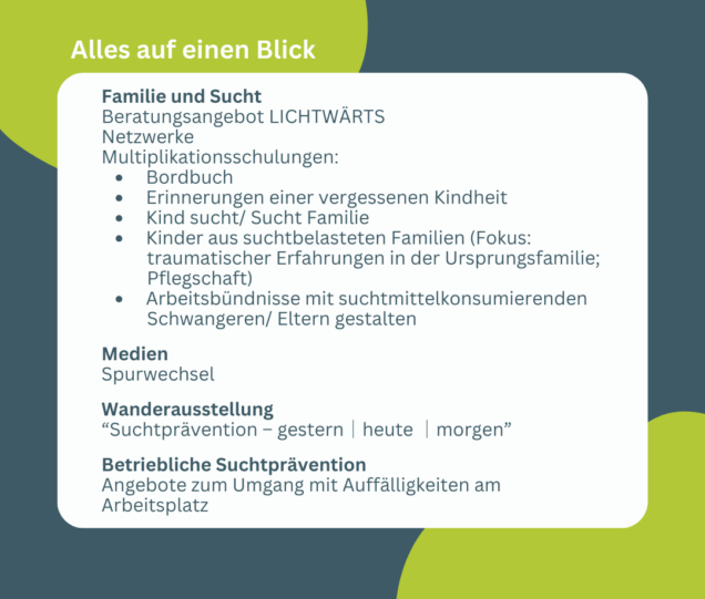 Multiplikationsschulungen zur Prävention von Abhängigkeitserkrankungen und Beratungsangebote